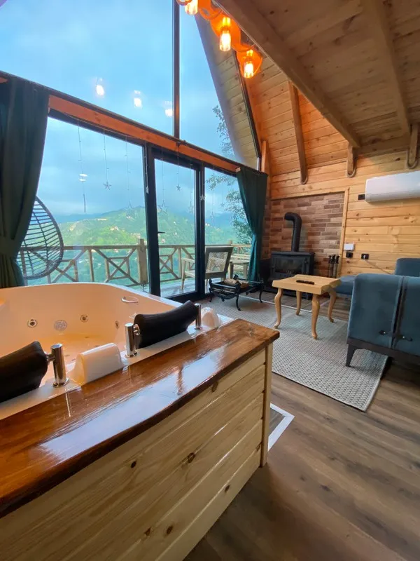 Doğanın kalbinde, kuş sesleriyle ve ormanın taze kokusuyla çevrili bu özel mekânda huzurlu bir tatil yapabilirsiniz. Modern ve ferah odalarımızda, ahşabın sıcak dokusu ile rahatlık ve şıklık bir arada sunulmaktadır. Balkonunuzdan dağların ve vadinin muazzam manzarasını izleyebilirsiniz.