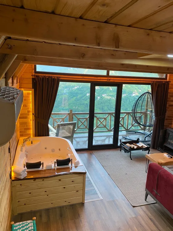 Doğanın kalbinde, kuş sesleriyle ve ormanın taze kokusuyla çevrili bu özel mekânda huzurlu bir tatil yapabilirsiniz. Modern ve ferah odalarımızda, ahşabın sıcak dokusu ile rahatlık ve şıklık bir arada sunulmaktadır. Balkonunuzdan dağların ve vadinin muazzam manzarasını izleyebilirsiniz.