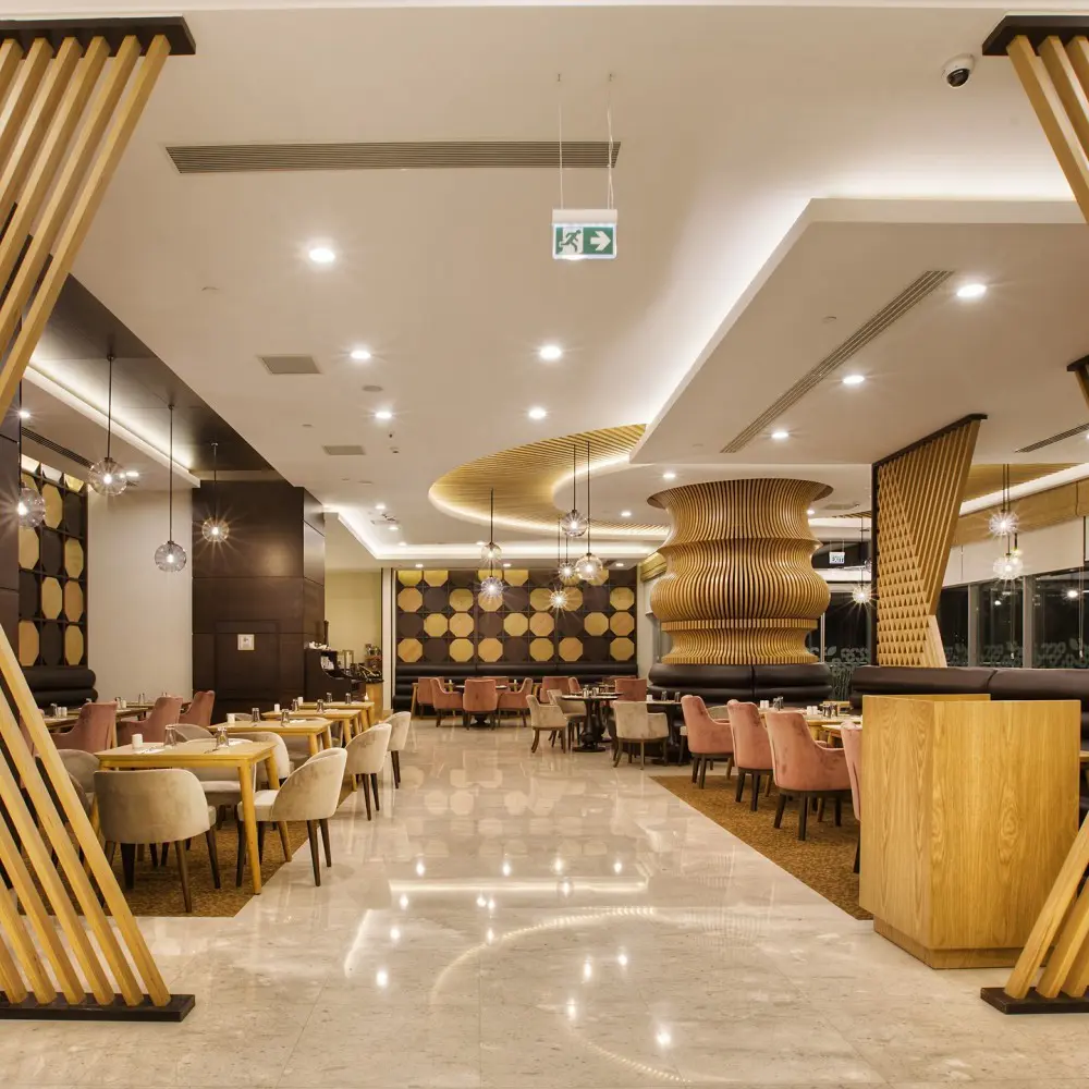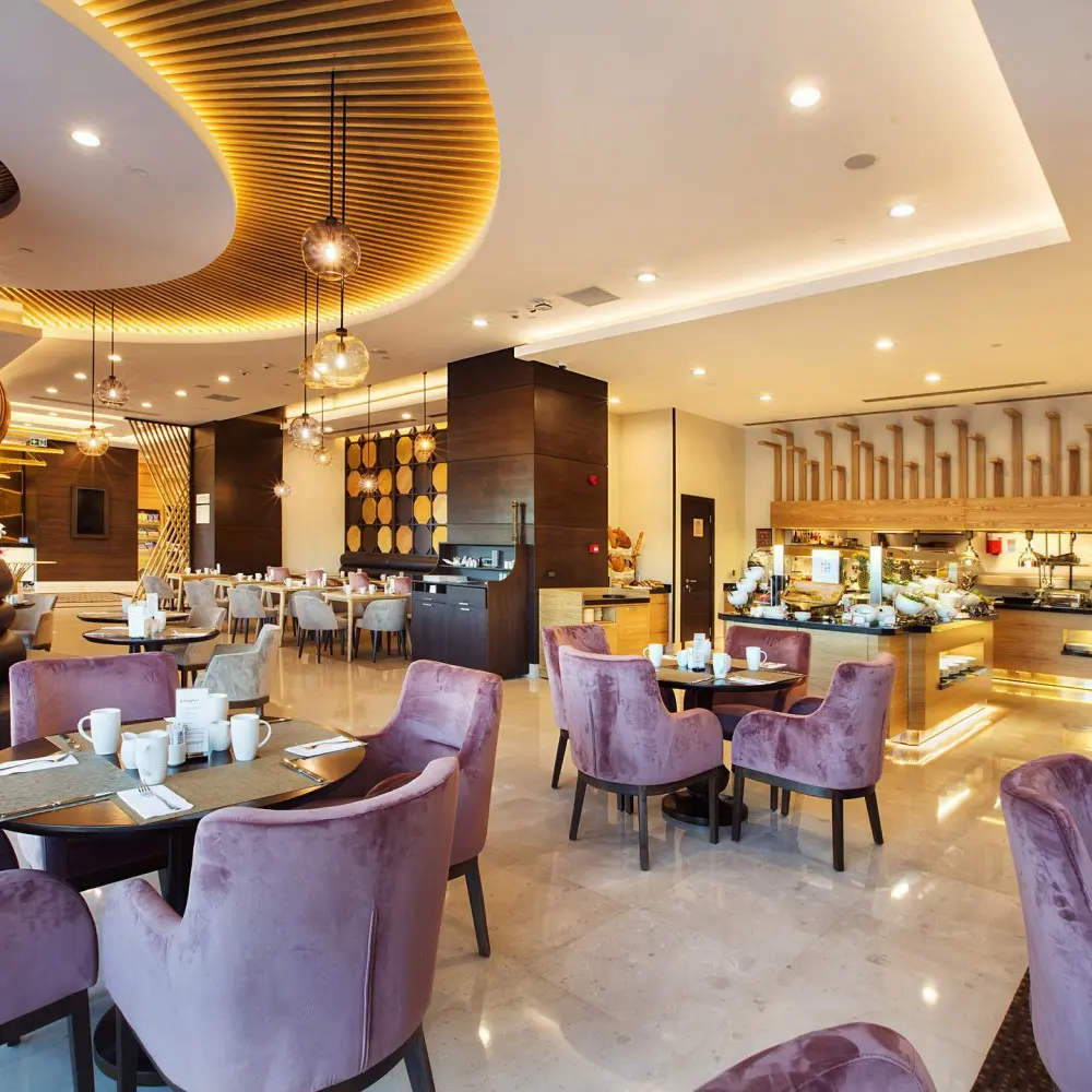 Her odada Hilton kalitesinde uyku konforu yaratan özel yataklarHer sabah güne zinde başlamanızı sağlayacak zengin kahvaltı büfesi, dünya ve Türk mutfağından lezzetleri tadabileceğiniz özel restoranAkşamları oda servisi ile odanızda özel akşam yemeği olanağıHer odada mini buzdolabı, ücretsiz çay kahve setiEn yeni teknoloji ile donatılmış, 12 kişiden 150 kişiye kadar konferans düzeninde oturma kapasiteli, gün ışığı alan 2 adet toplantı salonu ve konferans düzeninde 250 kişi oturmalı, yemek düzeninde ise 220 kişinin ağırlanabildiği 1 balo salonuFaks ve fotokopi makineleri, lazere baskı, hızlı internet erişimi ve ofis malzemeleriyle 24 saat ücretiz hizmet veren iş merkezi24 saat açık modern ve son teknoloji ekipmanlarla donatılmış egzeriz odasıSaç kurutma makinesi, ütü ve ütü masası