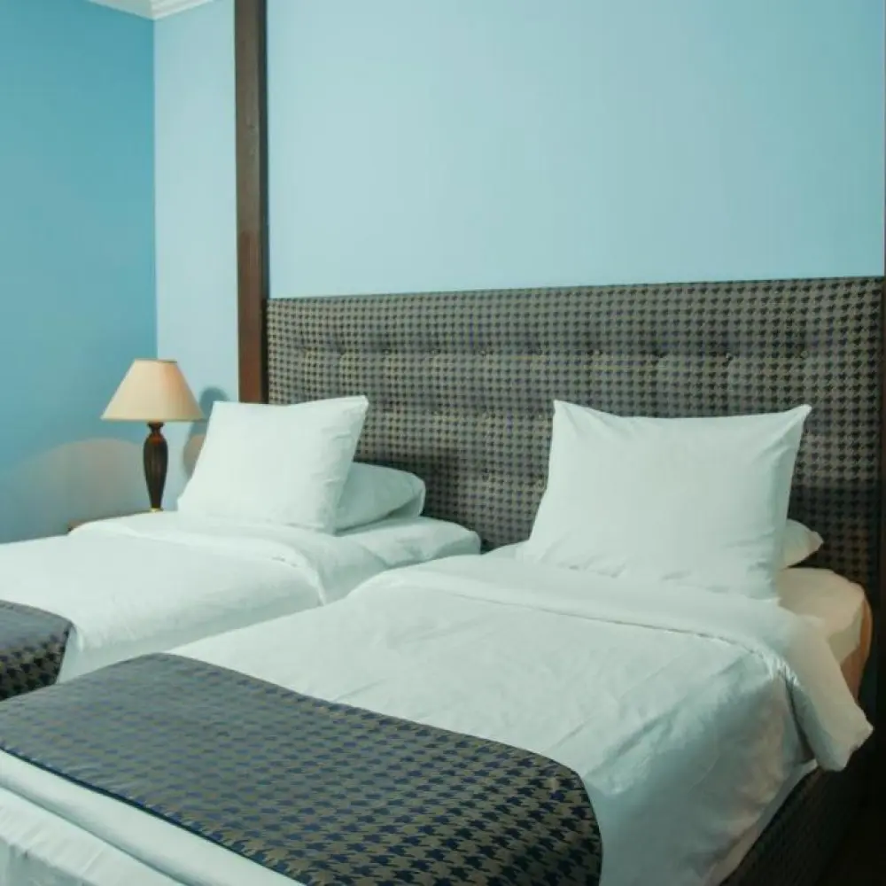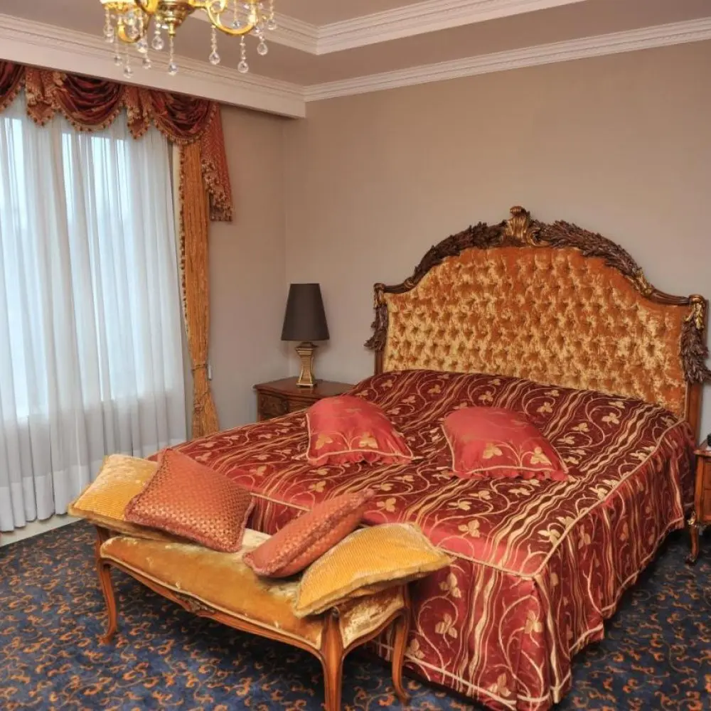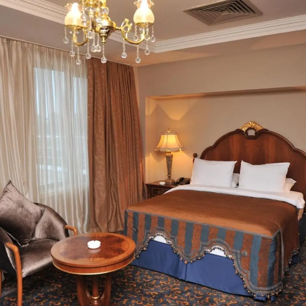 Intourist'in odaları parlak renkli ve ahşap mobilyalı klasik iç tasarıma sahiptir. Tüm odalarda küvetli özel banyo ve balkon vardır. TV'lerde uydu kanalları izlenebilir.